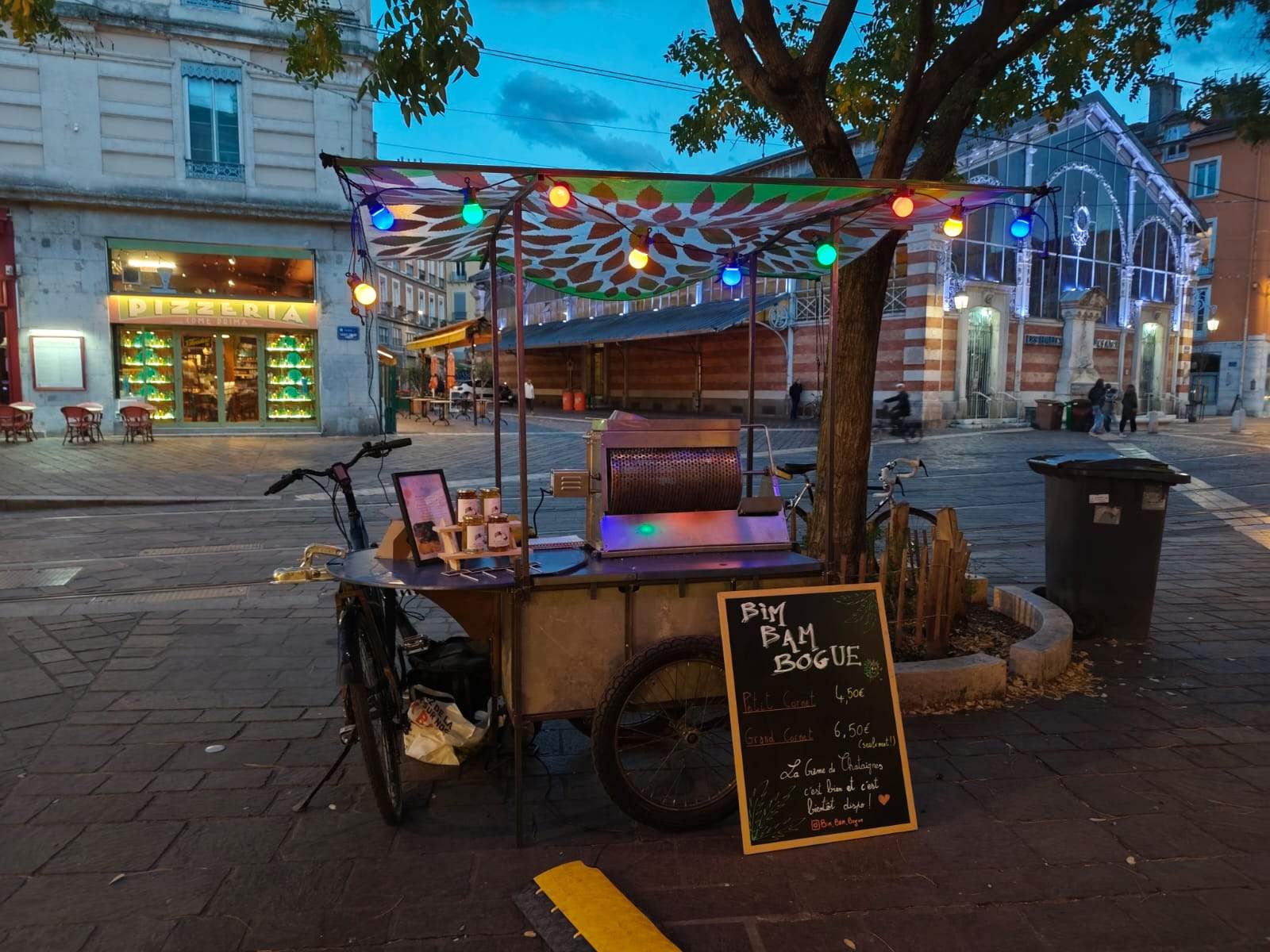 Le saviez-vous ? Bim Bam Bogue débarque à Grenoble avec son magnifique stand "made in Ardèche" pour vous régaler de châtaignes grillées, de crêpes au miel et (devinez) à la crème de châtaignes, pardi ! Envie de cadeaux de Noël consommables qui n'encombreront pas longtemps les placards ? Pensez à nos délicieux produits vendus directement sur le stand ! Vous pourrez aussi y faire le plein de châtaignes décortiquées en bocaux pour préparer vos dindes au marrons ! Promis, on vous prépare une belle recette d'ici Noël ;)